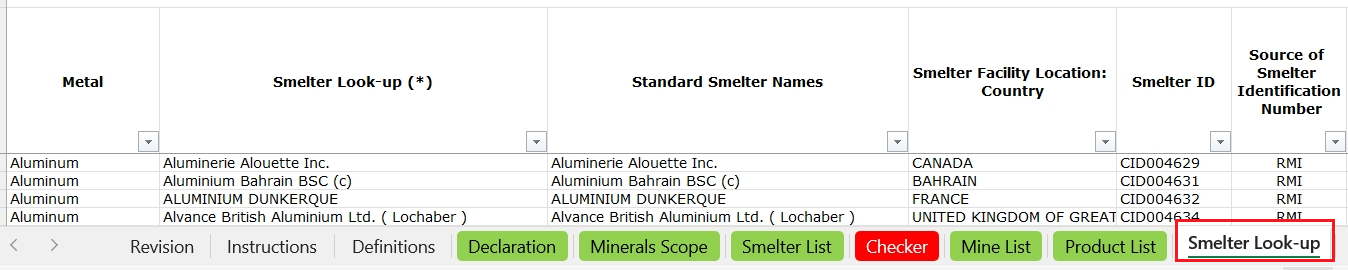 Smelter Look-up tab: Newly introduced