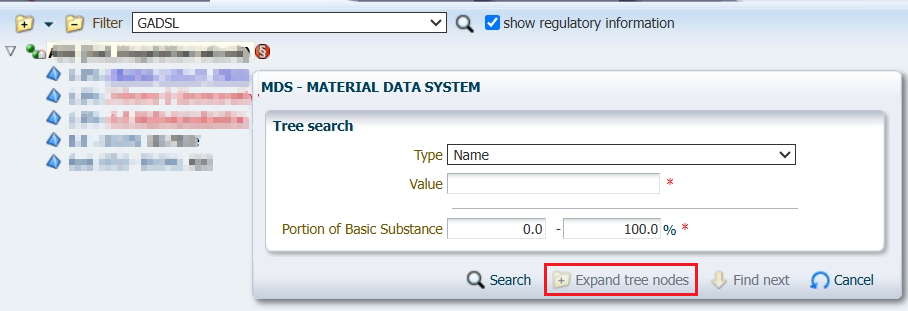 The option to search for confidential substances has been removed from both Tree Search and Where-Used Analysis