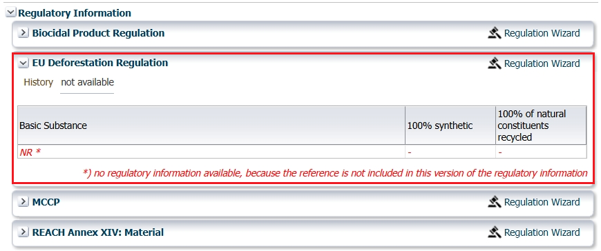 Materials containing substances related to EUDR can be sent/proposed without entering EUDR regulatory information.